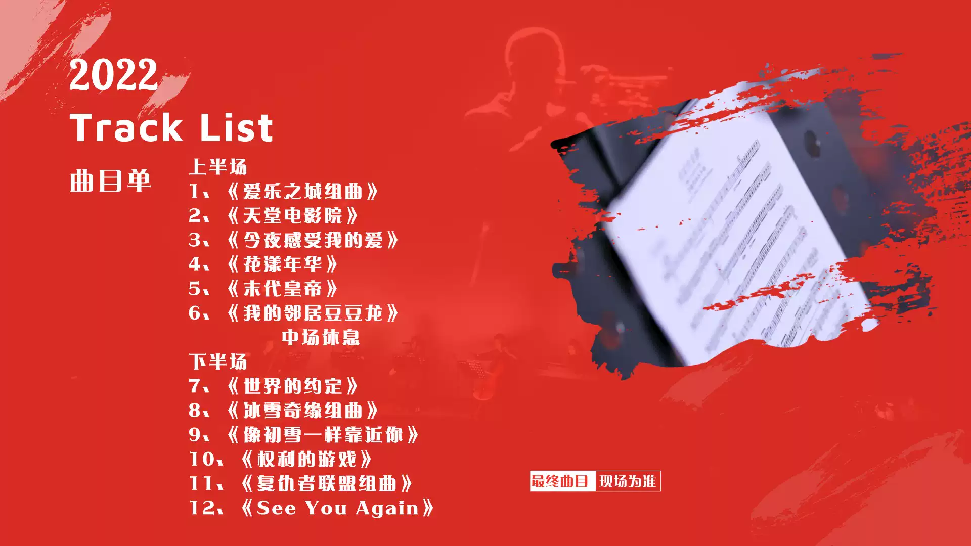 下午场15:30 电影主题音乐会
