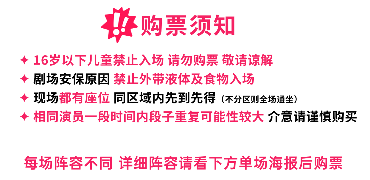 通过购买门票方式支持此演出,一旦票品售出概不退换(因不可抗力因素导致演出取消或延期除外),请您在购买时务必仔细核对您的订单信息并审慎下单。 已购买的门票可在 我的订单中查看购票信息。